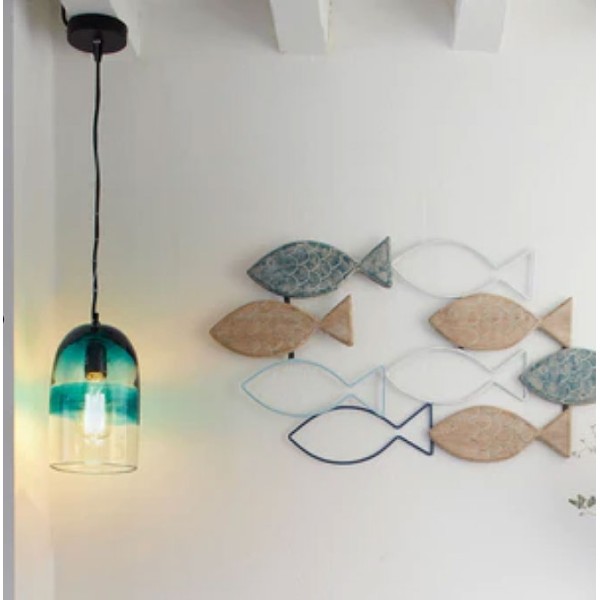 Candeeiro de vidro degradado pendurada no teto.