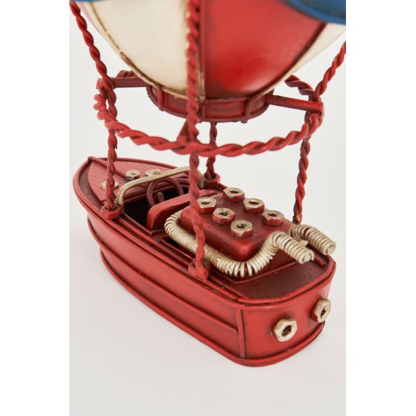 Figura decorativa de balão aerostático com barco, feita de metal e pintada à mão em vermelho. Esta linda figura de balão de ar quente vai decorar sua casa ou escritório com um estilo muito pessoal.