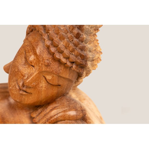 Buda meditando feito de madeira suar com um manto branco. Feito à mão na Indonésia, peça única.