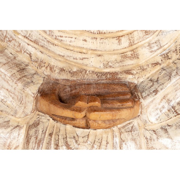 Buda meditando feito de madeira suar com um manto branco. Feito à mão na Indonésia, peça única.