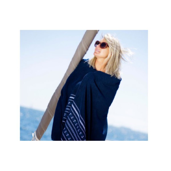 Toalha de praia muito agradável ao toque e cor azul. Coleção: SANTORINI Material: 100% algodão