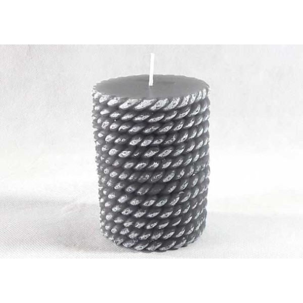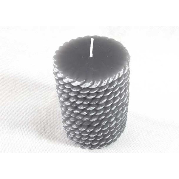 Conjunto de 2 velas de cera em forma de esfera de corda, cor preto e cinza.