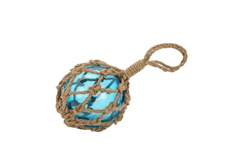 Set 2 Bóia de pesca de vidro. A bóia de pesca era um velho carro alegórico que consiste em uma esfera de vidro envolto em uma corda trançada. Foi usado até a década de 50. Tal foi fixado em flutuadores de redes de pesca para que eles permaneçam na superfície como eles andaram a jusante. Um objeto que dão um toque decorativo oceano.