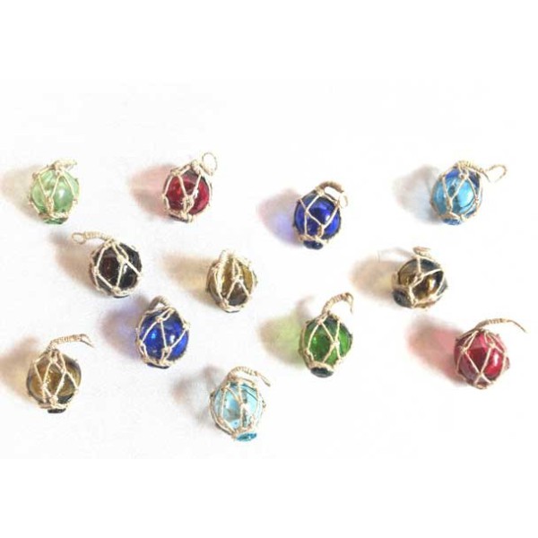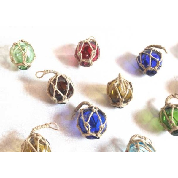 Variedade 12 bóias de cores. A bóia de pesca era um velho carro alegórico que consiste em uma esfera de vidro envolto em uma corda trançada. Foi usado até a década de 50. Estes carros alegóricos foram fixados em redes de pesca para que eles permaneçam na superfície como eles andaram a jusante.