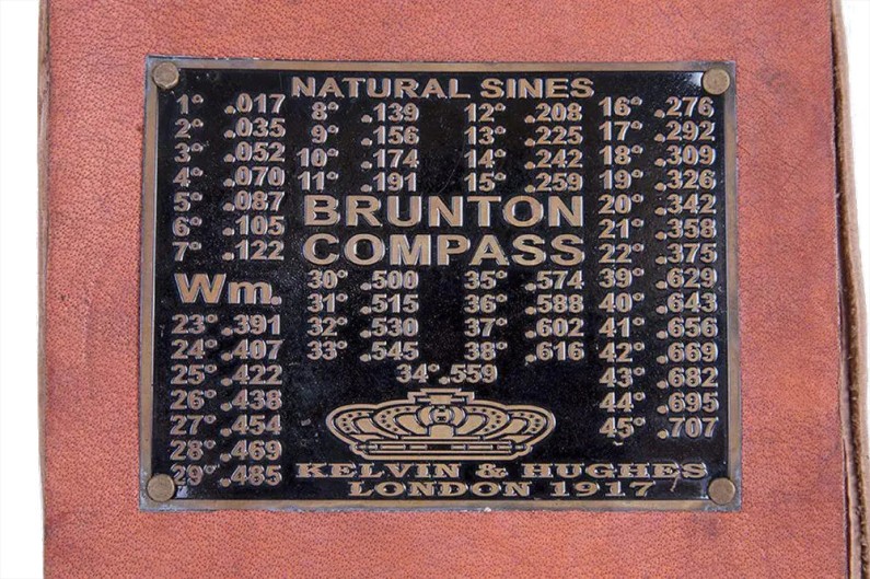 Bússola dourada envelhecida com estojo de couro.  História du Compass