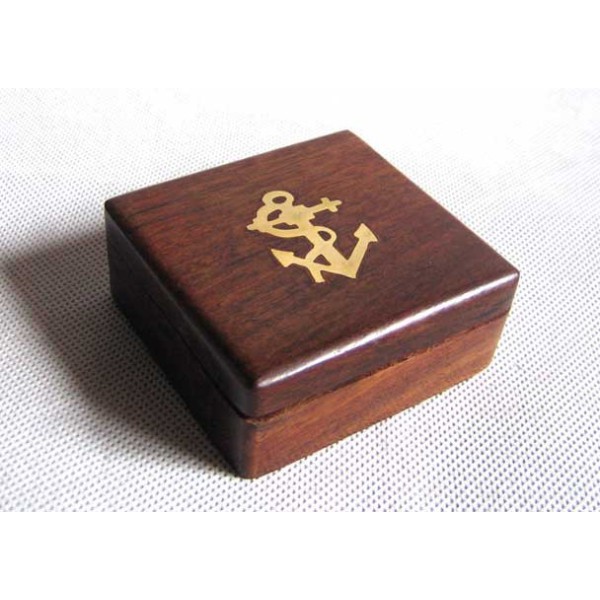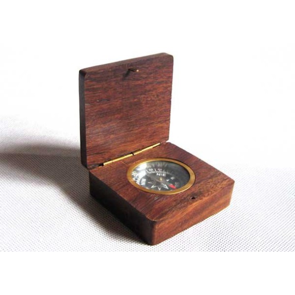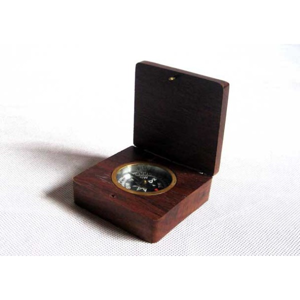 Acoplado Compass em caixa de madeira de alta qualidade com medidas de 6,5 x 6,5 x 2,5 cm. Ideal como um lembrete de convenções e visitantes, ou detalhes de empresa. História du Compass