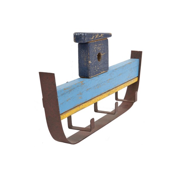 Cabide Navio feito de madeira, polido e pintado.