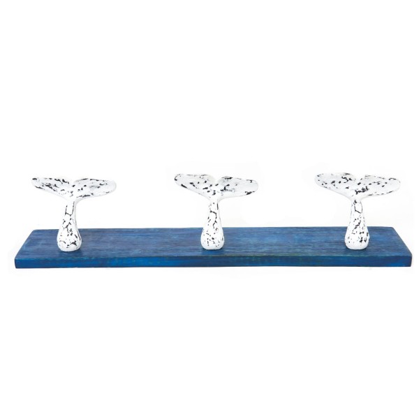 Cabide em forma de rabo de peixe de cores vivas com três ganchos de metal para pendurar bolsas, casacos e tudo o que quiser. Feito de madeira e pintados à mão.