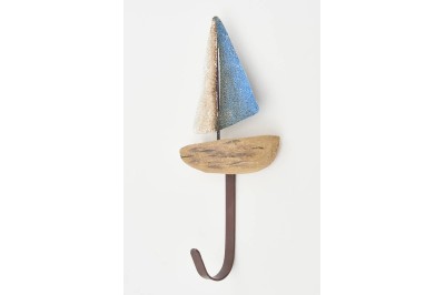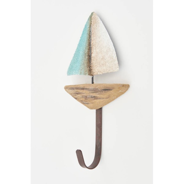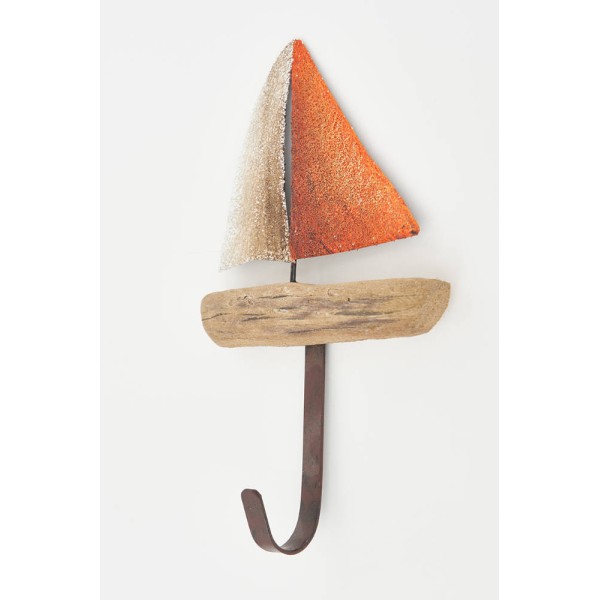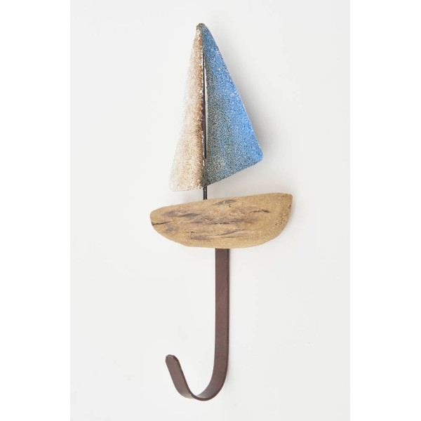 Conjunto de 3 cabides de parede em forma de barco, feitos à mão em madeira e aço.