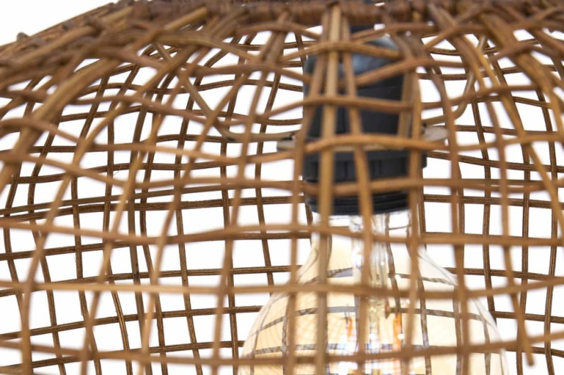Bonita luminária de teto decorativa em rattan. Esta luminária emite uma luz quente graças aos seus materiais naturais. Os seus materiais e tons criarão uma atmosfera aconchegante.