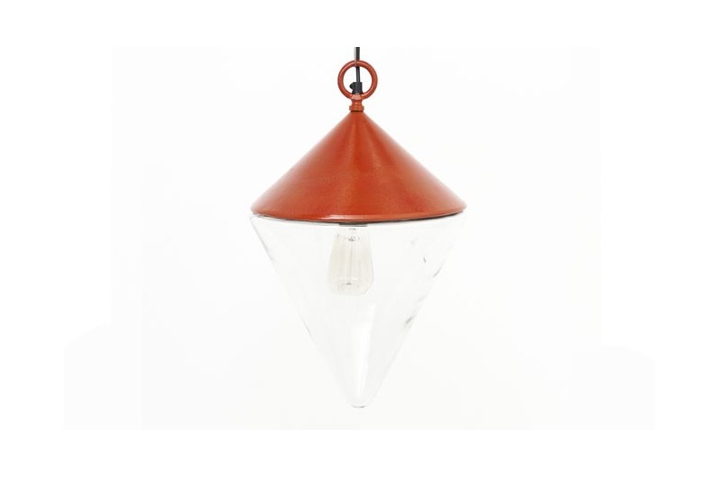 Candeeiro de pesca em metal envelhecido e vidro. Lâmpada E27. Funciona com 220v.