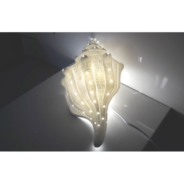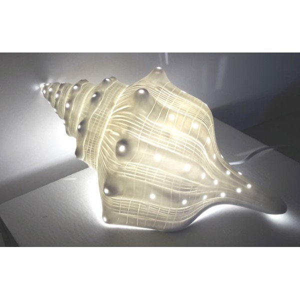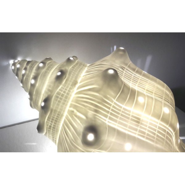 Candeeiro Caracola da porcelana translúcida. Bonito Candeeiro marinha que difunde uma luz quente, ideal para a atmosfera íntima e relaxante.