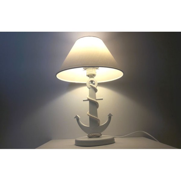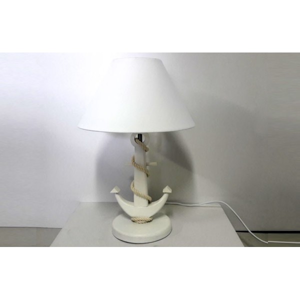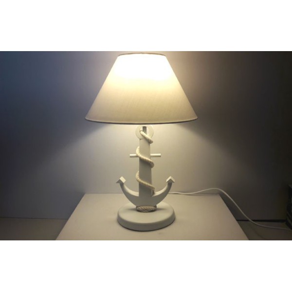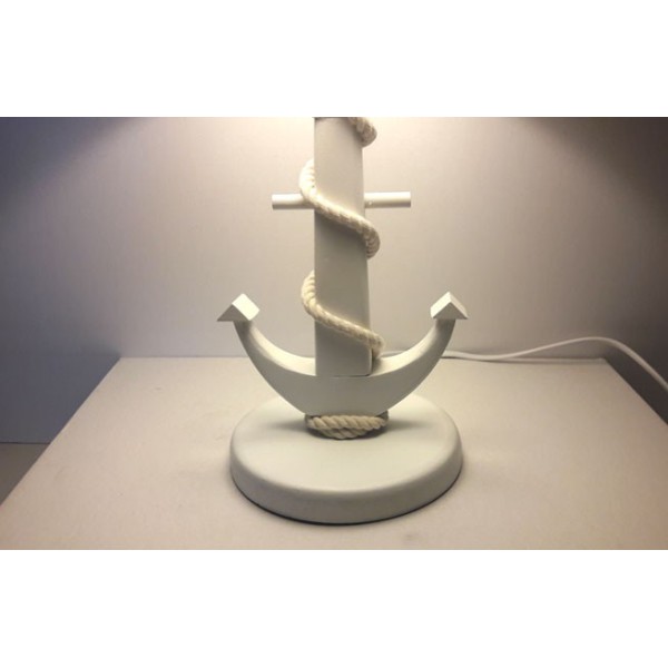 Candeeiro original com estilo marinheiro com pé de âncora. O pé de âncora marinha é feito de madeira de pinho. A corda é algodão.
