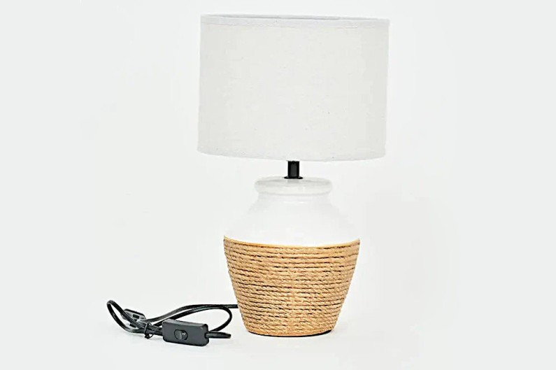 Candeeiro corda de cânhamo Natural inspiração marinha de uma grande simplicidade e elegância. Tela de juta difunde uma luz íntima agradável.