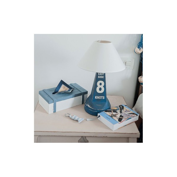 Candeeiro sinalizadora inspirada nas bóias sinalizadoras marítimas flutuantes. Candeeiro decorativo de madeira náutica, pintada e decorada à mão.