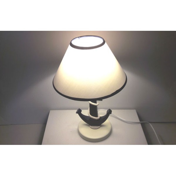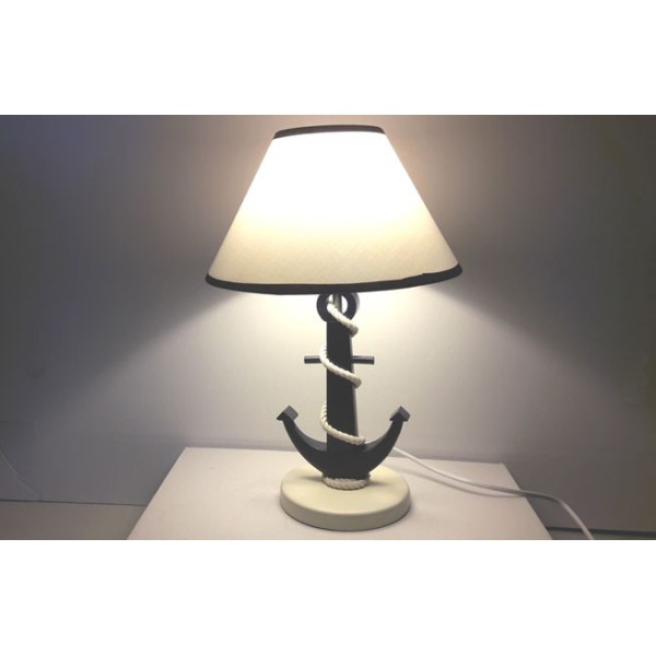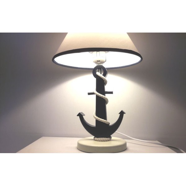 Candeeiro original com estilo marinheiro com pé de âncora. O pé de âncora marinha é feito de madeira de pinho. A corda é algodão.