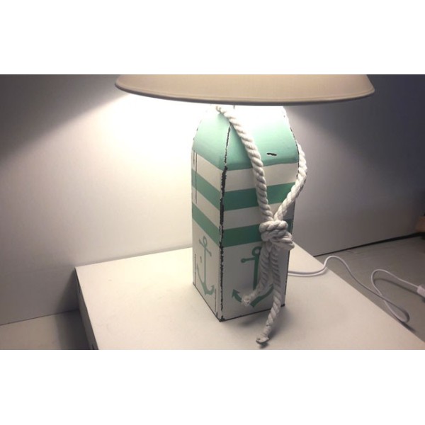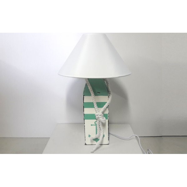 Candeeiro com pé de baliza decorativa feita de madeira de pinho. Feitos e pintados à mão.