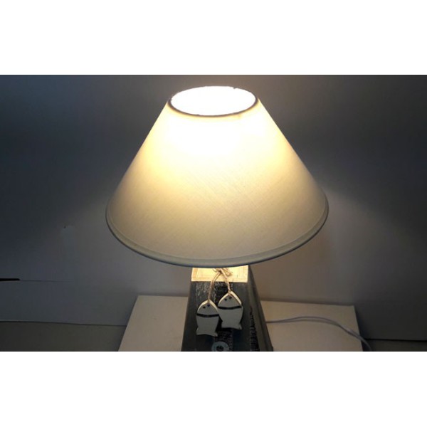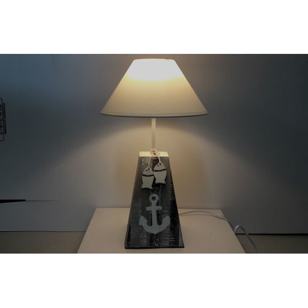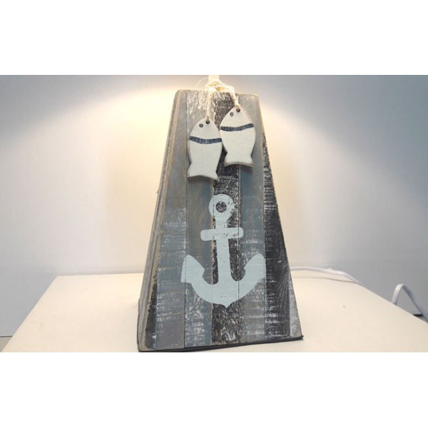 Candeeiro decorativa náutica feito de madeira, pintado e decorado com uma âncora marinha.