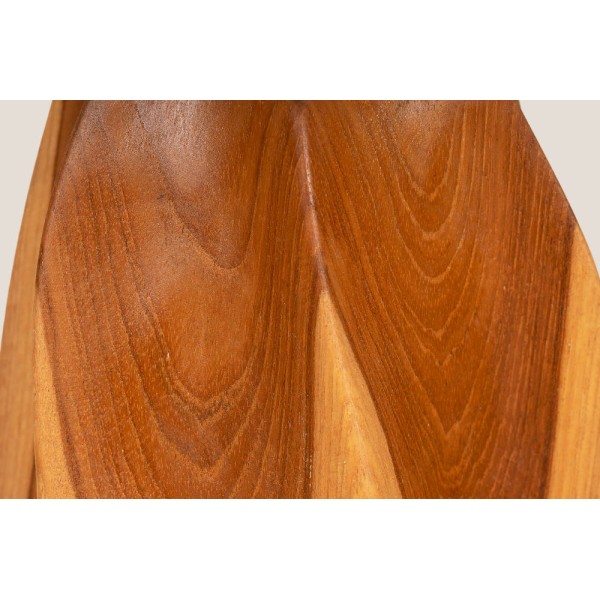 Candeeiro de mesa em madeira de teca com cúpula em fibra têxtil, feito à mão na Indonésia. Peça única.