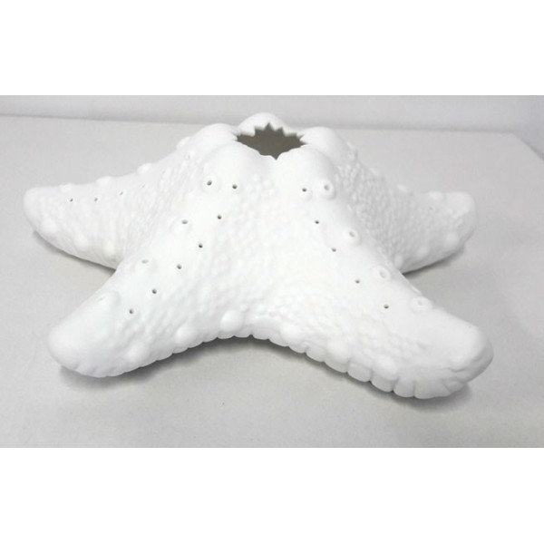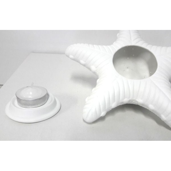 Castiçal de porcelana translúcida em forma de uma estrela do mar que emite uma luz bonita, quente.