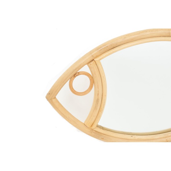 Espelho em forma de peixe com moldura de madeira. Feito à mão.