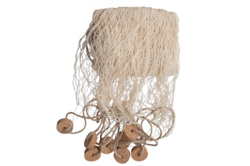Red du Pescador algodão Vermelho. Os flutuadores estão ligados em cada extremidade por uma corda de cânhamo. Objeto decorativo que será um ambiente marinho.