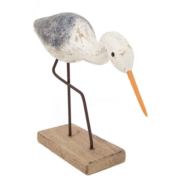 Figura de pássaro elegante para decoração marinha, reprodução de aves marinhas. Feito à mão em madeira pintada.
