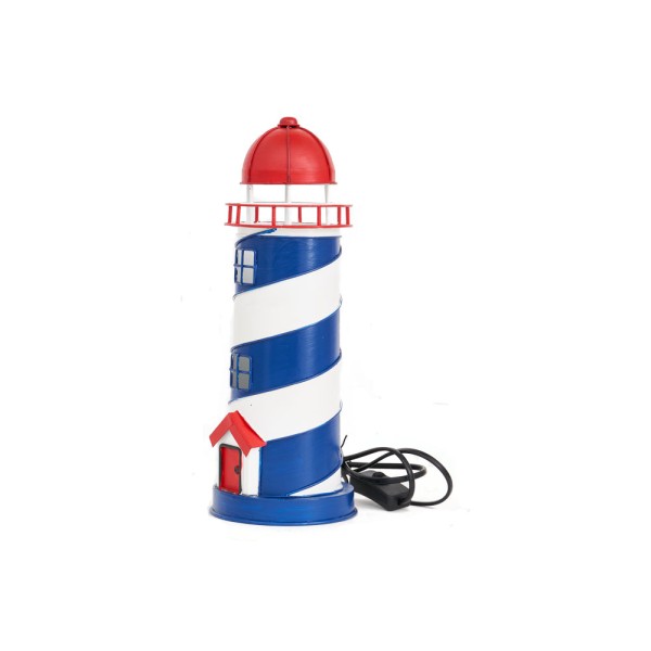 farol marinho artesanal colorida que funciona com Led. reprodução de um farol bonito na realidade. Muito acolhedor. Feito de metal.