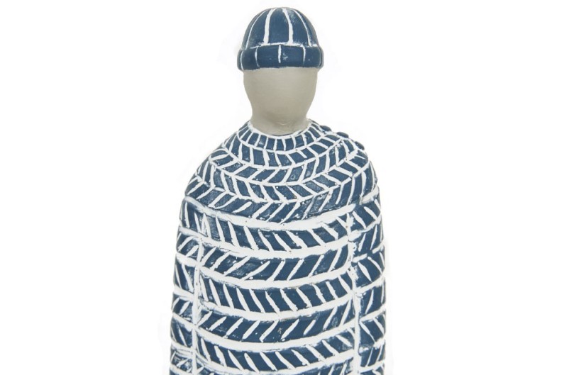 Estatueta decorativa de marinheiro feita e pintada à mão. A figura é feita de madeira.