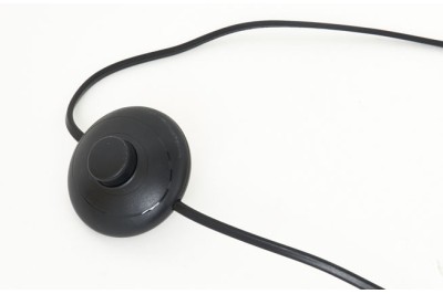 Candeeiro de chão de madeira, com quebra-luz translúcida de tecido. Funciona com 220v. E27