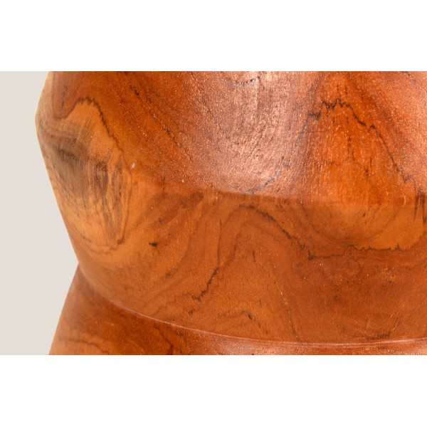 Candeeiro de mesa em madeira de teca com cúpula em fibra têxtil. Feito à mão na Indonésia.