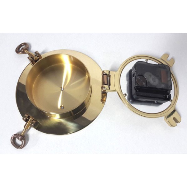 Relógio portillo com bandeiras. Relógio marinho com bandeiras internacionais de decoração no interior da esfera, encaixado em uma cavidade em latão simulando.