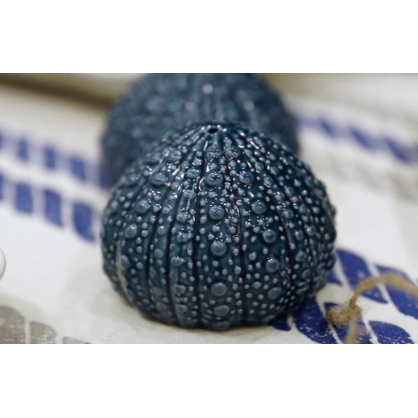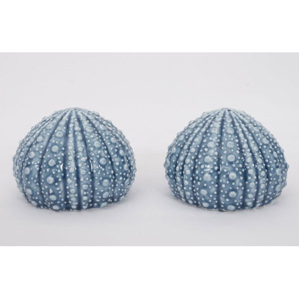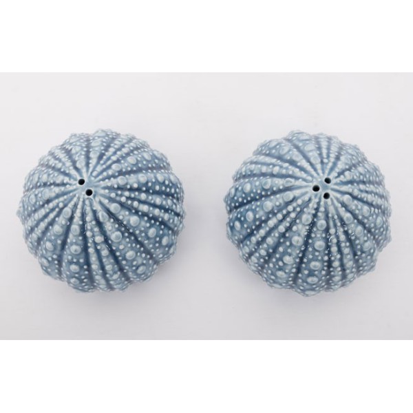 Salteador de sal e pimenta de cerâmica em forma de ouriço do mar.