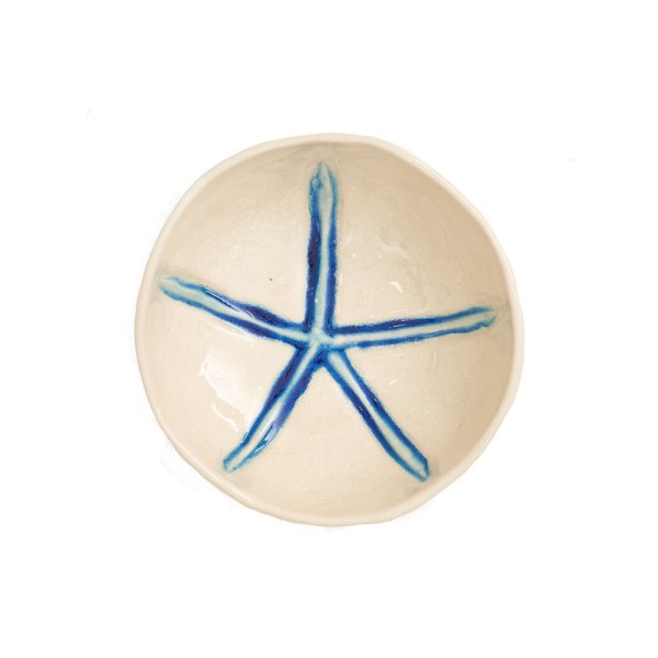 Tigela de cerâmica com estrela do mar pintada no interior.