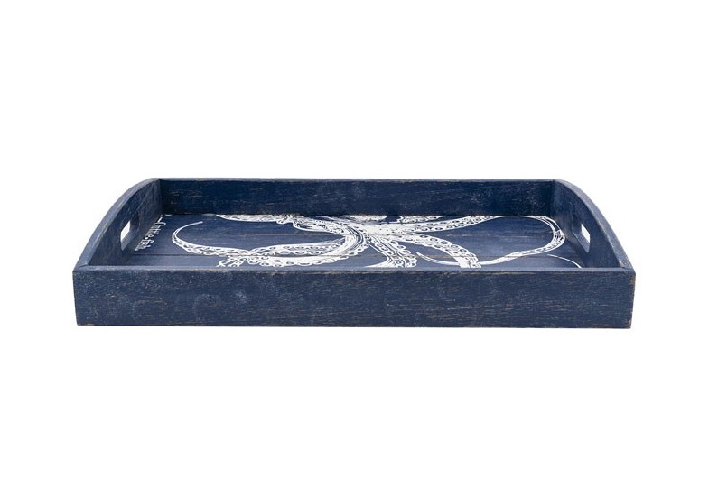 Bandeja rectangular com um polvo de decoração, muito leve e fácil de transportar. Feito de madeira.