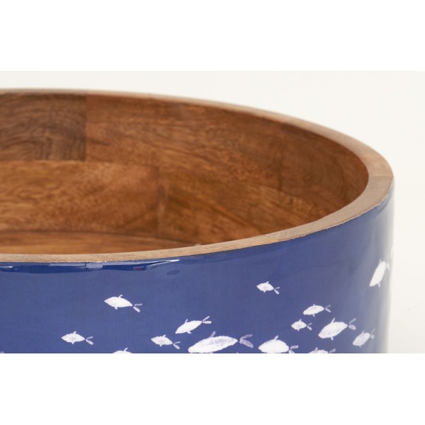 Tigela em madeira de bambu e esmaltada por dentro com peixes impressos.