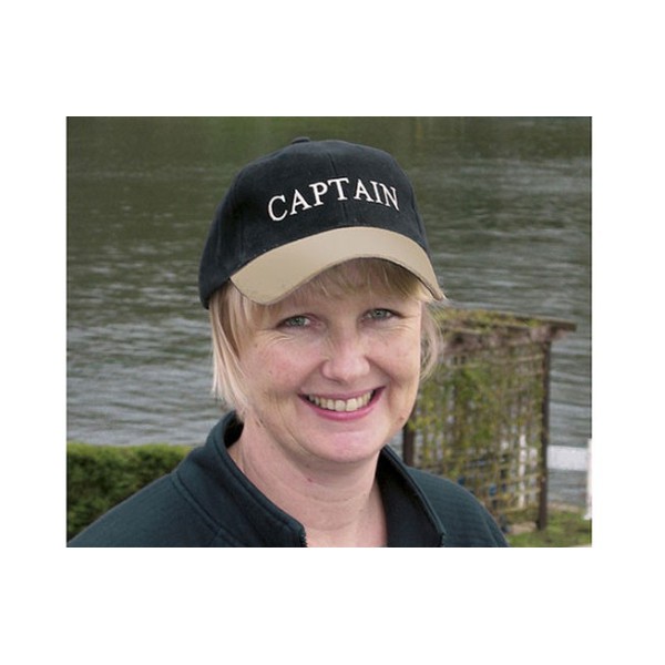 Boné do marinheiro preto com bordado da CAPTAIN. Projetado com aberturas para garantir a aeração da cabeça. Traseira ajustável.
