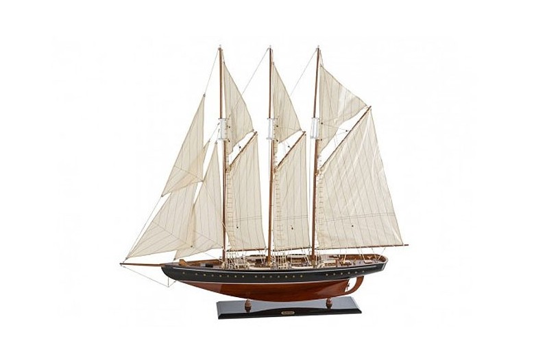Modelo barco Atlantic (1903), uma escuna de três mastros projetado por William Gardner. Ele terminou como navio de treinamento para a Guarda Costeira dos Estados Unidos. Os modelos é feita e pintados à mão. O mastro é desmontado para o transporte.