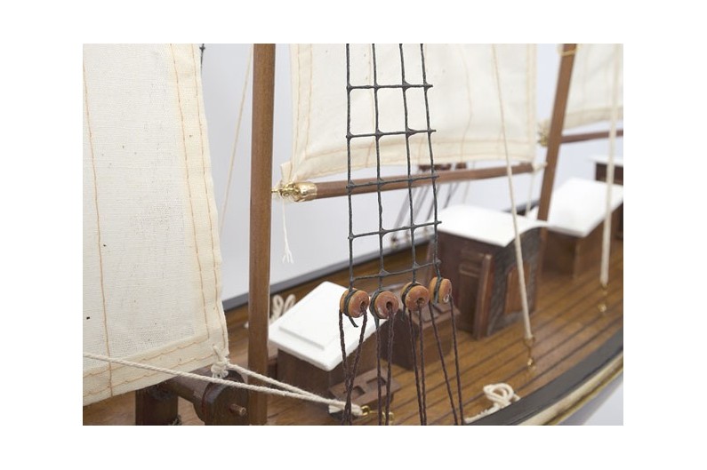 longitudinal (ou central ) , frente e para trás , em vez de booms transversal montados.escuna mercanteA escuna aparecem no século XVIII e tem características funcionais semelhantes ao brig , da qual difere principalmente pela sua plataforma. É um recipiente capaz de alcançar uma alta aderência contra o vento se aproxima por causa da sua faca . Por seu tamanho menor é mais destinado para as atividades de cabotagem comerciante para transporte de passageiros. A faca aparelhamento exige menos funcionários para lidar com eles. As escunas foram deslocamento geralmente menores do que os lançamentos, mas também teve mais tonelagem para ser usado na navegação entre os continentes , e em alguns casos até três naipes.