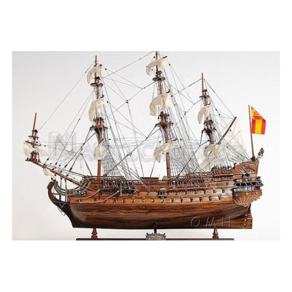 galeões espanhóis do século XVII e um dos primeiros navios losGaleon San Felipe 3 pontes, armados com 100 armas, mas com um design elegante. Ela era o navio de ligação da Marinha espanhola, que lutou contra os britânicos e os franceses. Em 1744 ele foi danificado durante um confronto com os navios britânicos e rebocado em Cartagena. Acabamentos decorativos modelo em uma madeira de alta qualidade, pintadas e totalmente montado assim artesanal.Embalaje em caixas individuais.
