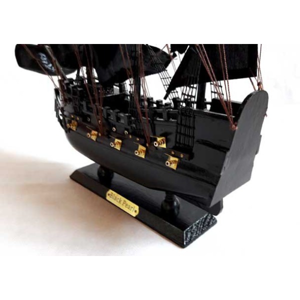 Modelo em escala do "Black Pearl" ou "Pérola Negra", concebido para filmes Piratas do Caribe. Modelo bonito da decoração marítima feita de madeira. Velas pretas são feitas de algodão.