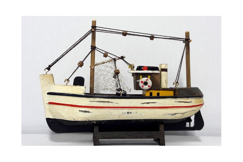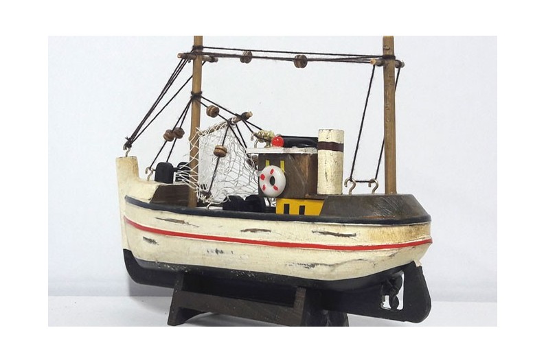 Bonito modelo de um Barco pesqueiro de decoração náutica de um Barco Pesqueiro TOTALMENTE MONTADO, um presente ideal que decora sua casa como seu escritório. Não persige o fidelidade na reprodução, mas seu valor decorativo. Construção de alta qualidade com os melhores materiais, com destaque para os mais pequenos detalhes.