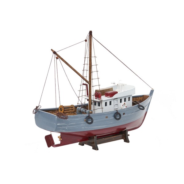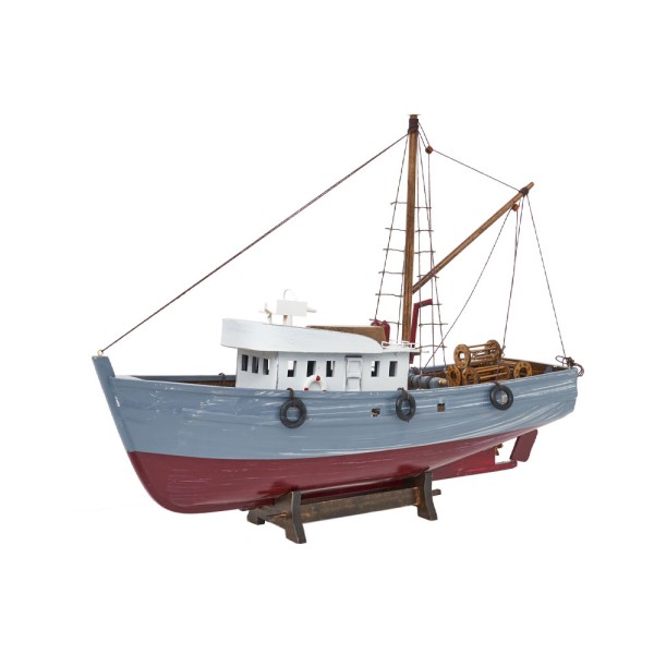 Pesqueiro típico da costa norte de Espanha da pesca do Merlúcio. Sua principal característica é a sua altaproa que protege contra o mar forte. Maquete de madeira feito à mão.