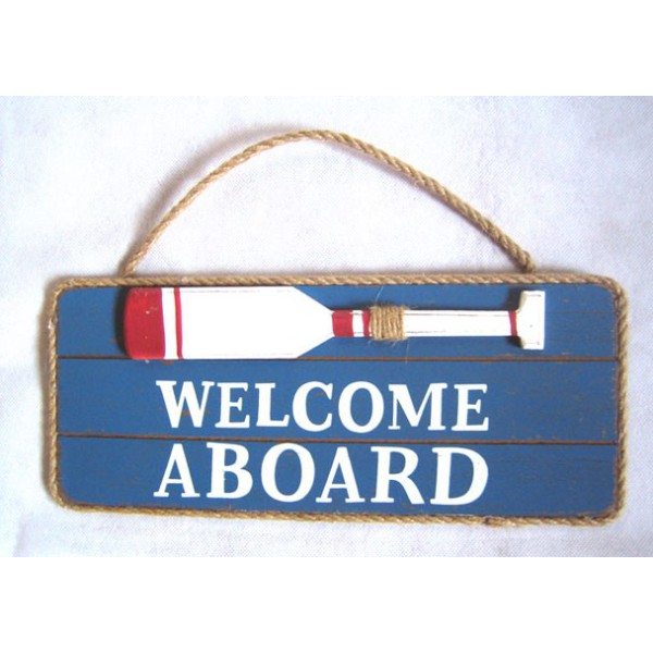 Placa de madeira "bem-vindos a bordo"