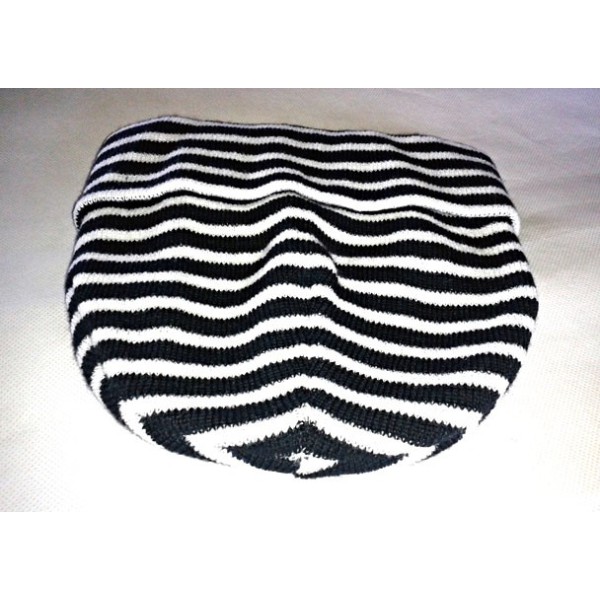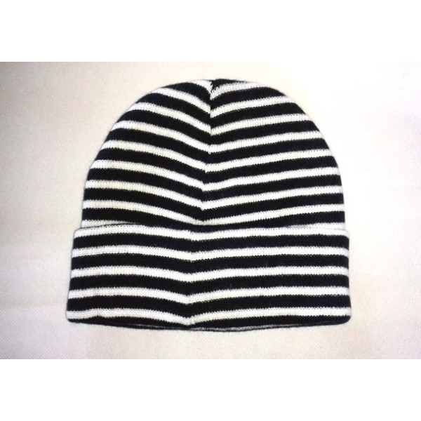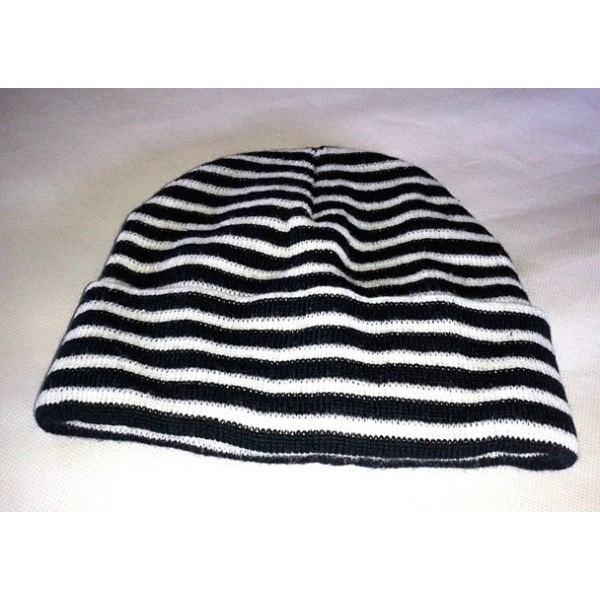 Gorro branco de marinheiro e estilo listrado azul, muito útil para o frio no mar.
