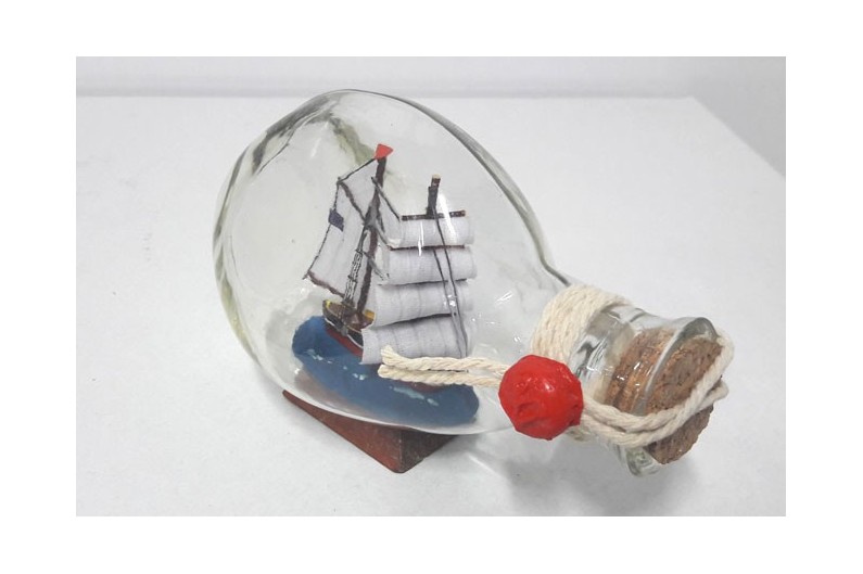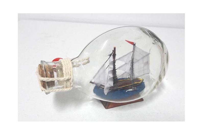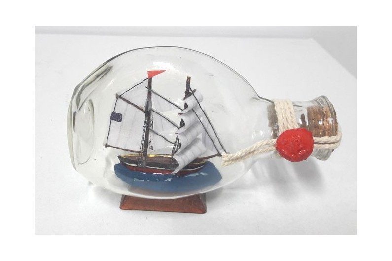 Barco em garrafas do 13,5cm qualidade da madeira esculpido, pintado e selado com cera. Ideal como um lembrete de convenções ou visitas, ou como um presente para as crianças.   Normalmente existem grandes quantidades em stock, no entanto, é possível que um produto que não é possível fornecer mais do que 500 unidades.