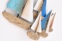 Decoração de parede em forma de veleiros, feita à mão com madeira e aço.