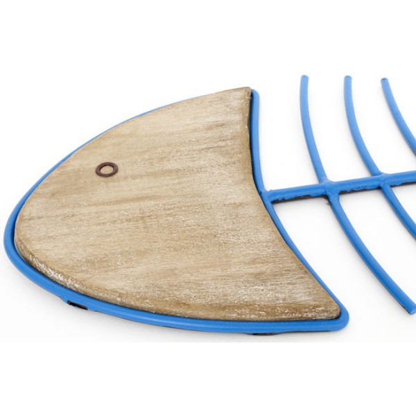 Peixe decorativo de parede, feito artesanalmente com aço e madeira.