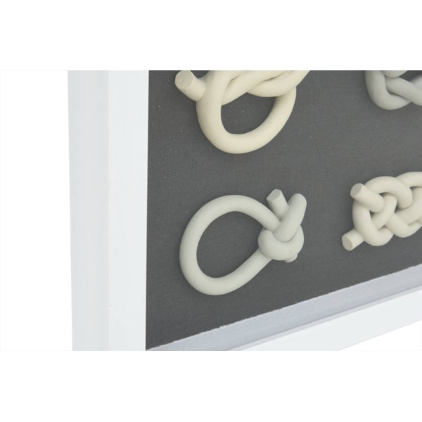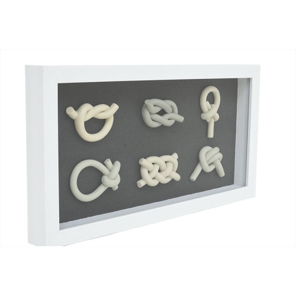Pintura marinha de prestígio. Com fundo preto, existem vários nós de marinheiro expostos. Estrutura em madeira maciça pintada de branco. Cada um dos nós é feito tradicionalmente de acordo com as tradições marítimas.