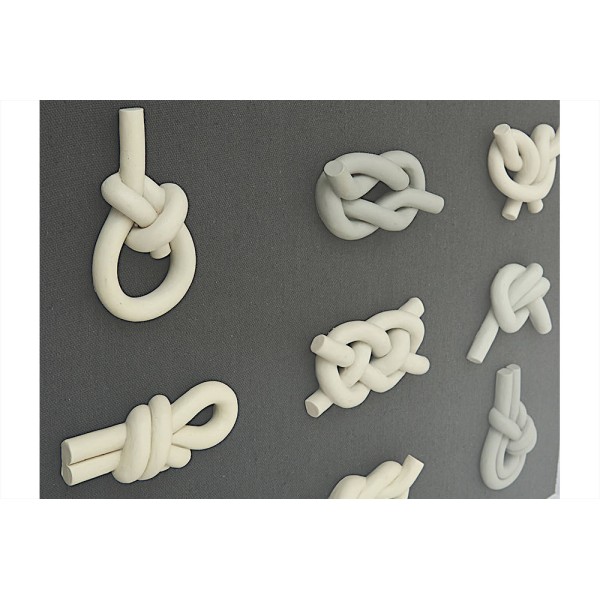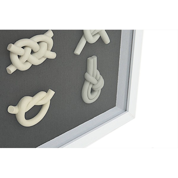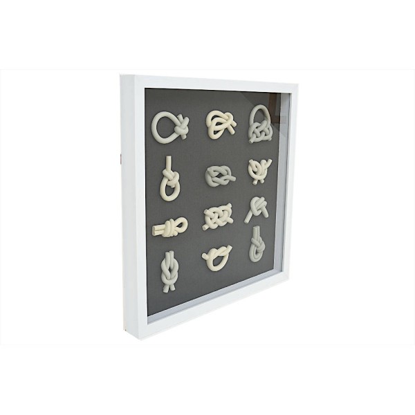 Bonita pintura de nó náutico. Com fundo preto e moldura em madeira pintada de branco. Cada um dos nós é feito sinteticamente.